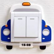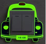 Villany Kapcsoló dekoráció és kapcsoló védőburkolat több mintával, éjszaka világít a sötétben.